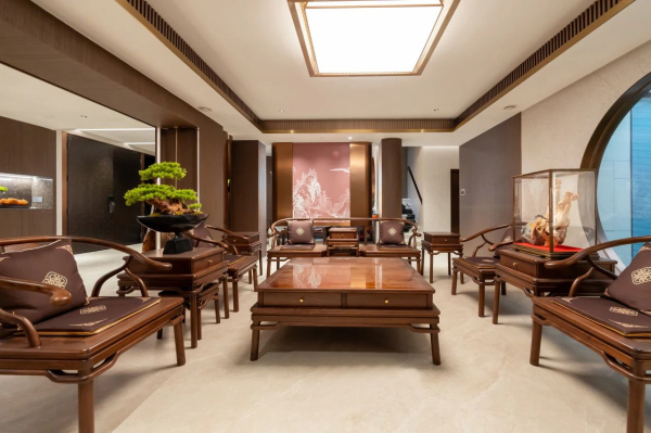 新中式風(fēng)格以中國(guó)古典文化為背景,以紅木、紫砂等典型工藝品做點(diǎn)綴,結(jié)合對(duì)稱式設(shè)計(jì)的沉穩(wěn)空間布局,將中國(guó)傳統(tǒng)元素與現(xiàn)代設(shè)計(jì)理念完美糅合,既強(qiáng)調(diào)了文化內(nèi)涵,也營(yíng)造了禪意氛圍。