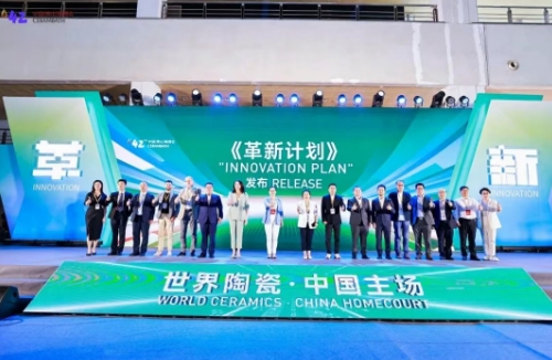 開幕式現(xiàn)場發(fā)布《革新宣言》,中國建筑衛(wèi)生陶瓷協(xié)會(huì)、中國陶瓷工業(yè)協(xié)會(huì)、中國建筑材料流通協(xié)會(huì)、廣東省陶瓷協(xié)會(huì)、佛山市陶瓷行業(yè)協(xié)會(huì)、廣東東鵬控股股份有限公司、廣東宏宇集團(tuán)有限公司、廣東鷹牌實(shí)業(yè)有限公司、廣東金意陶陶瓷集團(tuán)有限公司、佛山市金九方陶瓷有限公司、廣東簡一(集團(tuán))陶瓷有限公司、蒙娜麗莎集團(tuán)股份有限公司、廣東蒙創(chuàng)致遠(yuǎn)新材料科技有限公司、高安羅斯福陶瓷有限公司、淄博金獅王科技陶瓷集團(tuán)有限公司、佛山中國陶瓷城集團(tuán)有限公司共同宣言:以綠色智造降低生產(chǎn)端碳排放,構(gòu)建產(chǎn)品全生命周期服務(wù)體系,加速人工智能在生產(chǎn)決策端的應(yīng)用落地。
