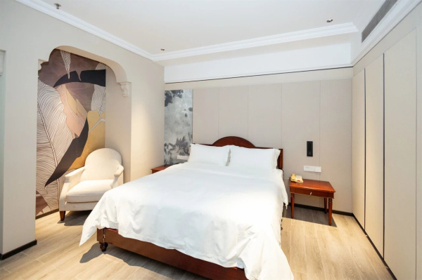 客房內,墻板以豐富的飾面選擇,完美復刻天然材質的紋理和質感,為客房營造出溫馨雅致的不同風格,更創造了寧靜舒適的休憩環境。