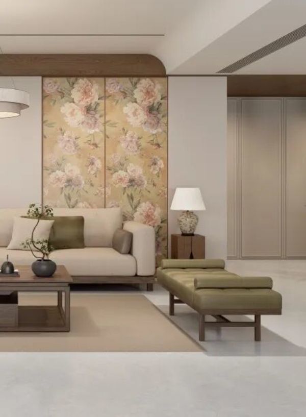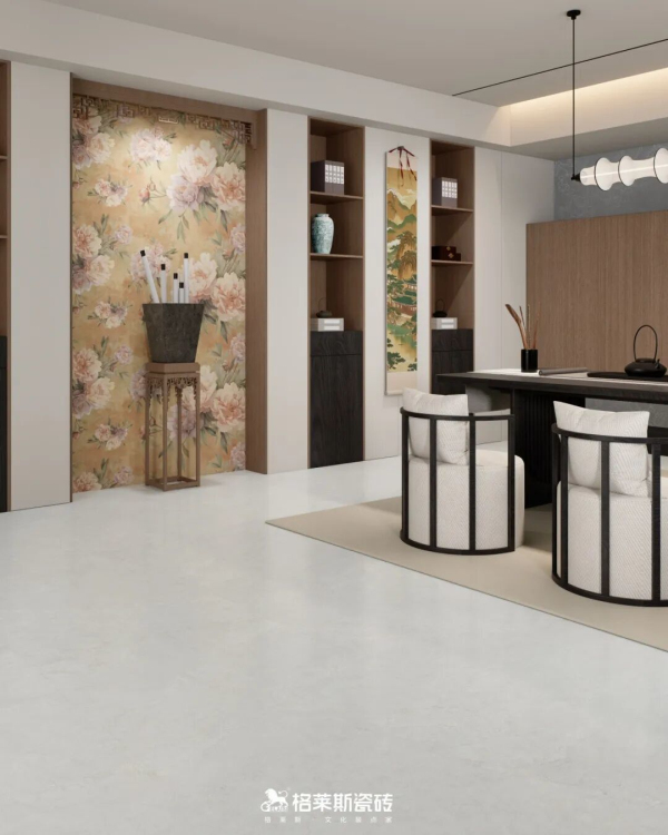溫馨的暖杏墻面點(diǎn)綴鋪貼寓意吉祥富貴的洛神·花田花片,東方花藝散發(fā)出高雅氣息,簡(jiǎn)單提升空間氣韻。搭配禪意燈具、綠植和國(guó)風(fēng)擺件,一個(gè)寧?kù)o而富有禪意的當(dāng)代東方空間便油然而生。