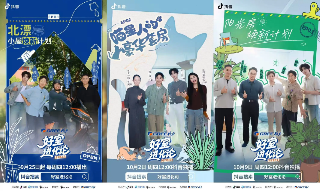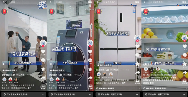 為打通 “觀看—種草—消費(fèi)” 的關(guān)鍵鏈路,「好室進(jìn)化論」IP特別打造H5專題頁面,最大化承接全站熱度,將內(nèi)容價(jià)值高效轉(zhuǎn)化為商業(yè)價(jià)值。專題頁作為微綜播放入口,支持用戶隨時(shí)回看節(jié)目精彩片段;同時(shí)整合達(dá)人種草專區(qū),集中展示格力產(chǎn)品在真實(shí)場景中的使用效果;最后設(shè)置 “同款選購” 通道,用戶可直接跳轉(zhuǎn)購買微綜中出現(xiàn)的新國標(biāo)全能王空調(diào)、505荔枝冰箱、鯨濤鋅礦凈水機(jī)等產(chǎn)品。另外,節(jié)目依托抖音平臺(tái)強(qiáng)大的流量資源,通過話題頁、開屏廣告、阿拉丁推薦、H5等多渠道全方位導(dǎo)流,最大化覆蓋目標(biāo)受眾。