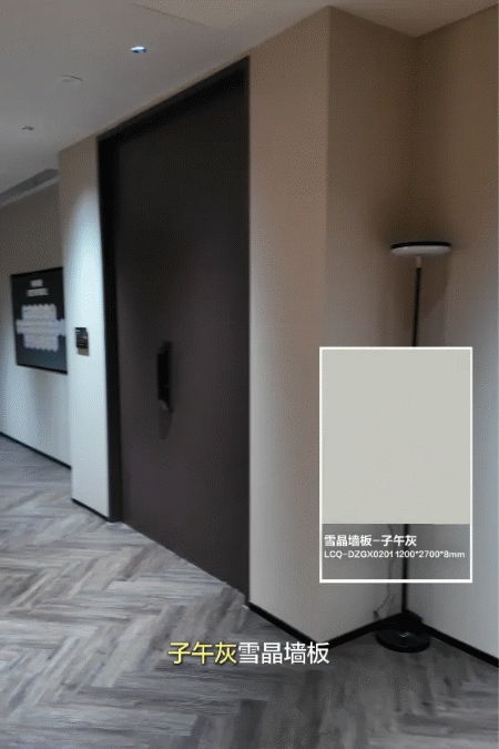 雪晶墻板“子午灰”以獨特的打底板特性和精致布紋肌理,為智慧空間奠定優質基礎。出色的打底性能為智能設備集成提供理想載體,安全防火、隔音降噪的特性,更能優化空間聲學環境,在美學與實用層面為智慧空間提供雙重保障。