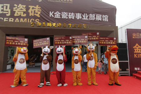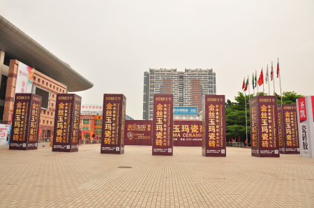熟知金絲玉瑪的人大概都有這樣的贊嘆:一路走來總是光芒萬丈,每次出場總是氣勢逼人!此次參展,金絲玉瑪繼續將“要么不做,要做就做到最好”的企業作風一以貫之。從華夏陶瓷城廣場可看到,除了逾1600平方米的金絲玉瑪兩大展館赫然挺立,雄偉壯觀,周邊的戶外廣告包括入口處的龍門架、超大立柱廣告、堆頭、水旗等更是隨處可見,奪人眼球,成為陶博會一道亮麗的風景線。鋪天蓋地的廣告投入,強勁有力的宣傳攻勢,也正表現出金絲玉瑪雄厚的實力背景!