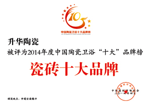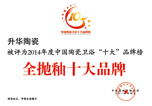 2014中國陶瓷家居與房地產跨界合作峰會暨第三屆中國陶瓷衛浴年度十大品牌榜頒獎盛典于4月26日在云南騰沖世紀金源大酒店隆盛大啟幕。升華陶瓷在此次年度十大品牌榜頒獎盛典憑借自身實力獲得了“2014年度中國陶瓷衛浴瓷磚十大品牌和全拋釉十大品牌”雙料冠軍。