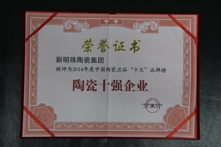 美麗騰沖、春暖花開,中國陶瓷家居與房地產合作峰會暨2014中國陶瓷衛浴年度十大品牌榜頒獎盛典于2014年4月26日在云南騰沖世紀金源大酒店隆重舉行,中國陶瓷行業的領軍企業新明珠陶瓷集團憑借優良的口碑一舉摘得2014年度中國陶瓷衛浴“十大”品牌榜五大獎項,其中新明珠集團喜獲“陶瓷十強企業”稱號、冠珠陶瓷、薩米特陶瓷喜獲“陶瓷十大品牌”稱號、格萊斯陶瓷、德美瓷磚喜獲“拋光磚十大品牌”稱號。