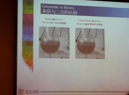 鄧永華介紹說,360dpi,6級灰階打印出來的效果明顯比720dpi二態打印效果更順滑的色彩和更密實濃墨。