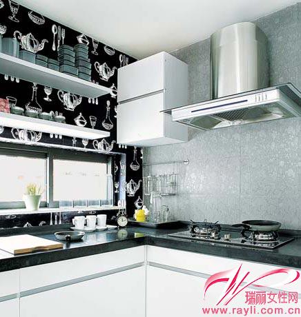 整個廚房的壁櫥、底柜等均采用白色,配上黑色的把手和黑色的流理臺、黑白的廚房電器,黑白搭配錯落有致。而色彩鮮艷的菜肴在這黑白世界中,更讓人感覺誘人、可口。[NextPage]