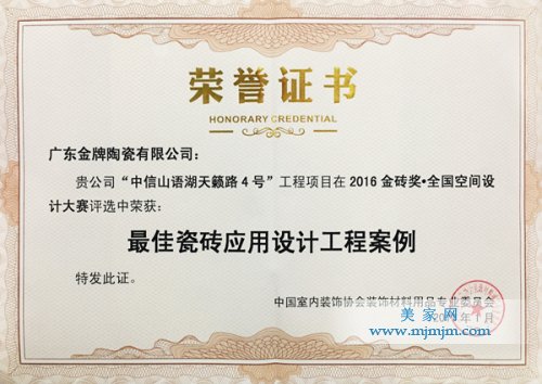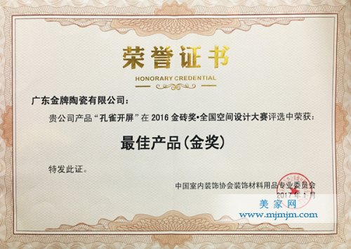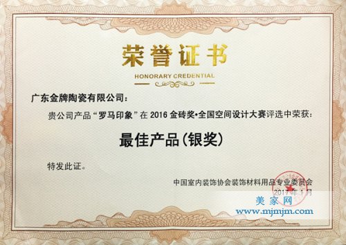 1月10日,由中國室內(nèi)裝飾協(xié)會裝飾材料用品專業(yè)委員會、廣東設(shè)計師聯(lián)盟聯(lián)合主辦的2016第三屆“金磚獎”全國空間設(shè)計大賽頒獎盛典隆重舉行。金牌亞洲磁磚榮譽(yù)滿載,分別榮獲“產(chǎn)品設(shè)計大獎(金獎和銀獎)”以及“年度最佳瓷磚應(yīng)用設(shè)計工程案例獎”三項(xiàng)榮譽(yù)。