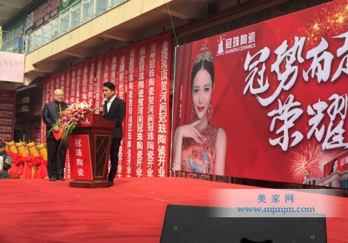 早上十點整,世界名模曹青青小姐的隆重出場,正式拉開開業大典序幕!精彩紛呈的節目表演,有趣幽默的臺下互動,點燃了業主們的熱情。在開業大典上,廠方領導對河間冠珠陶瓷表示了衷心的祝賀,更是對河間冠珠在逆市敢于投入的做法表達了鼓勵和贊揚。
