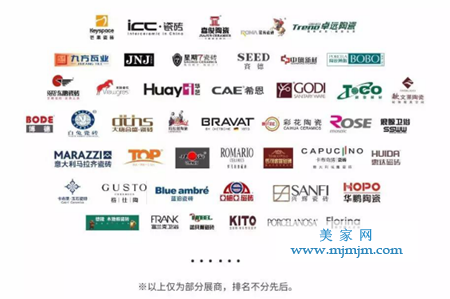 中國陶瓷城展館面積5.3萬平方米,共有270多家企業參展,參展商由固定參展商和臨時參展商組成,其中固定展位面積約5萬平方米,臨時展位面積約3千多平方。展商主要包括東鵬瓷磚、馬可波羅瓷磚等知名品牌,意大利馬拉齊、帕達納等國際一線品牌,還有費羅娜水泥磚等品類冠軍,以及全國各產區各類自主出口品牌。