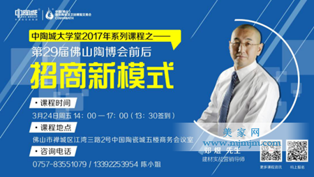 展會前后,組委會特邀建材行業專業營銷咨詢機構的首席培訓導師鄧煜先生于3月24日(主題:展會前后招商新模式)以及4月28日(主題:第29屆佛山陶博會后的終端提量)對參展商進行培訓,助力企業提升銷售業績。