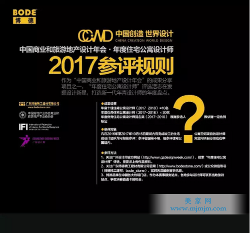 2017年,博德精工建材攜手IFI(國際室內建筑師設計師團體聯盟)、廣州設計周,強強聯手,聯合推出“中國創造 世界設計”(2017-2018年度)大型主題活動,在全國各地通過設計論壇等形式推舉設計師角逐為“2017 中國新商業和旅游地產設計年會•年度住宅公寓設計師”年度大獎,為中國的設計力量提供發聲的平臺和機會!