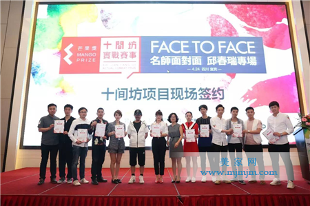 邱春瑞評委與廖瑋女士與瀘州賽區(qū)四位設(shè)計師周建良(右1)、張靜(左2),以及團(tuán)體陳殿生(右2)、劉健(左1)簽下十間坊實(shí)戰(zhàn)賽參賽之約,意味著他們2017十間坊實(shí)戰(zhàn)賽賽程正式開啟。