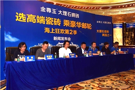 4月28日上午,"選高端瓷磚、乘豪華郵輪"金尊玉大理石瓷磚海上狂歡第2季新聞發布會在金尊玉大理石瓷磚總部舉行。金尊玉董事長南順芝 ,金尊玉銷售總經理李亞波,企業顧問 、鑫旺智業首席講師曾回旺,CIID 佛山專委副會長、艾特獎佛山執委會執行主席蔡祝源,湛江設計力量常務副會長黃標,深州洲際設計創始人兼設計總監黃后欽,豪華郵輪公司代表伍隆龍以及來自美家網等20余家行業主流媒體出席了發布會現場。