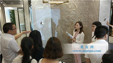 特地•負離子瓷磚的趙總帶領一眾企業家參觀了解特地•負離子功能瓷磚。