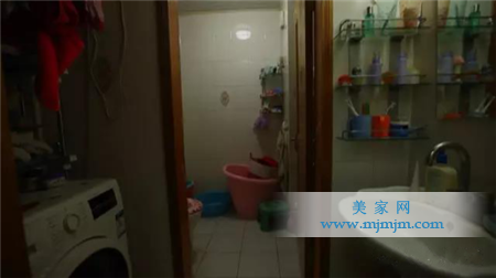 改造前的衛(wèi)浴間,光線偏暗,衛(wèi)浴產(chǎn)品老舊。一家五口的生活雜物堆積在衛(wèi)浴間,造成日常生活的不便。