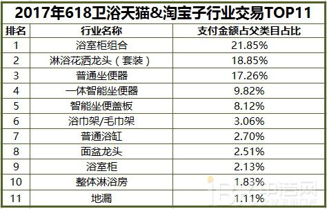 轉眼,2017過去了一半。當國內各大建材家居企業紛紛曬出2017上半年成績單時,不得不承認這樣一個事實:“定制”依然是家居行業最大的增長點。當前,建材家居各個行業紛紛瞄準了“定制風”,試圖在風口上切分這塊定制“蛋糕”,而其中最有勁兒的莫過于衛浴企業。從剛過去不久的618大促天貓數據來看,位居榜首的浴室柜組合似乎更受消費用戶青睞。那么,今天我們就來扒一扒如此火爆市場的產品——浴室柜組合。