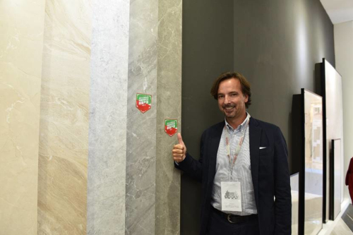 設計師ROBERTO DI STEFANO了解了諾貝爾瓷磚產品后,對諾貝爾展出的其中一款大板瓷拋磚比較喜歡。他表示,諾貝爾的金屬咖色的大板很特別,非常適合現(xiàn)代設計。
