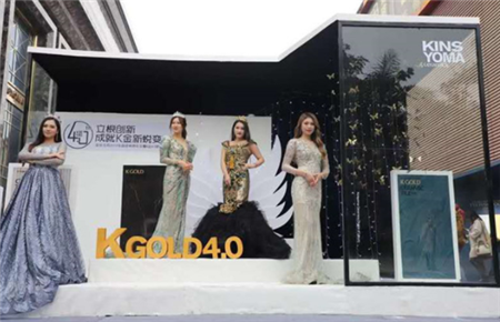 簡單而隆重的K金4.0系列新品啟幕儀式,章云樹先生、章云黨先生、尹虹博士、劉勇先生、林瑩女士、齊世助先生、胡靜宇先生、楊威威先生8位領導嘉賓共同上臺,走到金粉墻后接過金粉,在倒數3聲后從墻的頂端將金粉緩緩灑落,共同為金絲玉瑪K金瓷磚4.0新品華麗啟幕。金絲玉瑪K金瓷磚4.0新品發布正式啟幕,它將引領K金裝飾新典范。