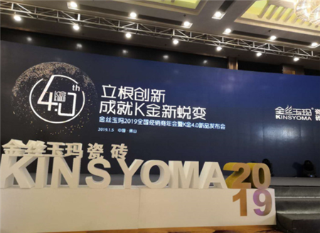 2019年1月5日,以“立根創新·成就K金新蛻變”為主題的金絲玉瑪2019全國經銷商年會暨K金瓷磚4.0新品發布會,在金絲玉瑪佛山總部如期舉行。章氏企業董事長章云樹,章氏企業董事總經理章云黨,中國建筑衛生陶瓷協會副秘書長、華南理工大學教授、佛山市陶瓷行業協會秘書長尹虹博士,中國建筑衛生陶瓷協會流通分會秘書長劉勇,新潤豐集團.瓷海國際副總裁林瑩,章氏企業南莊生產基地廠長齊世助,金絲玉瑪品牌總經理胡靜宇,金絲玉瑪銷售部總經理楊威威等領導嘉賓,來自全國各地的金絲玉瑪經銷商代表們,以及眾多媒體記者共同見證了此次發布會。