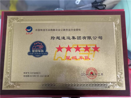 在中國物流與采購聯合會公路貨運分會主辦的第二批“中國公路貨運星級車隊評選”活動中,跨越榮獲中國公路貨運五星級車隊獎。