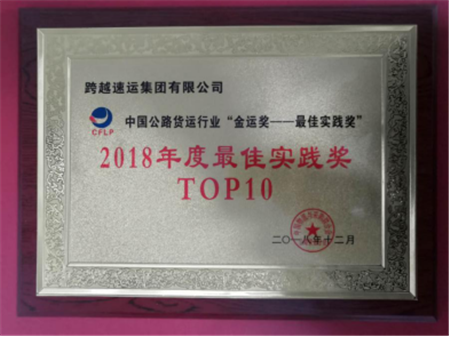 在中國物流與采購聯合會公路貨運分會開展的2018年度中國公路貨運行業“金運獎”——“最佳實踐獎”評選活動中,跨越從80多家知名物流企業中脫穎而出,榮獲中國公路貨運行業“金運獎”最佳實踐獎。