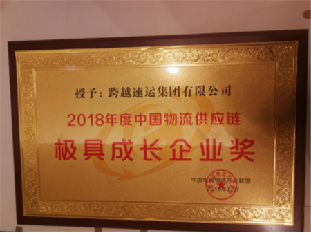 時隔不久,再傳捷報!在歷時3個月的2018年度電商物流獎項評選活動中,跨越榮獲中國電商物流產業聯盟頒發的2018年度中國物流供應鏈極具成長企業獎。
