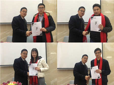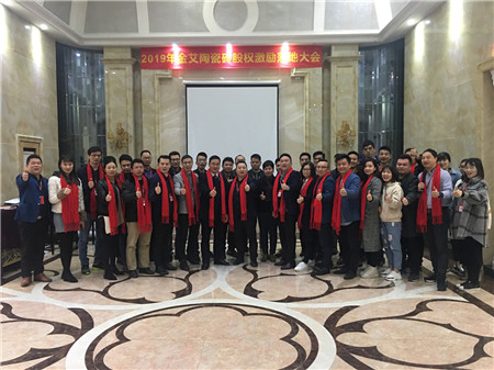 簽約儀式后,銷售二部總經理葉國勝、銷售三部總經理蔡偉鵬作為首批被授予股權激勵的核心領導班子成員首先在大會上發言,表達了自己對此次股權激勵的欣喜與公司長遠發展美好憧憬,今天只是萬里長征的起點,股權激勵不等于坐著分錢,需要大伙一起努力去做業績賺到錢才能享受分錢的喜悅。用習大大的一句話來總結,幸福生活,是擼起袖子干出來的。2019,一起干。