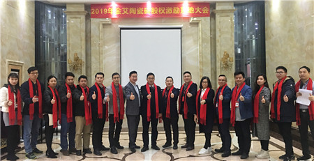 金艾陶瓷磚董事長劉鴻祥先生、營銷總經理羅勝先生、副總經理劉鴻瑞先生及公司全員出席了此次大會; 華一世紀集團佛山分公司總經理谷先生出席現場,見證了整個股權激勵啟動大會的進展過程。
