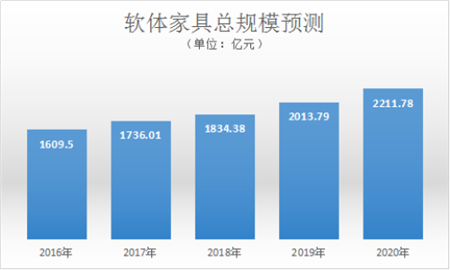 中國已經成為全世界最大的軟體家具消費國,而在城鎮化的進程中市場對軟體家具需求逐步增加,預計未來軟體家具將繼續保持穩定增長,未來在消費升級及消費主體年輕化的趨勢下,軟體家具滲透率以及價格有望持續提升,2020年有望達到2200億元市場規模。