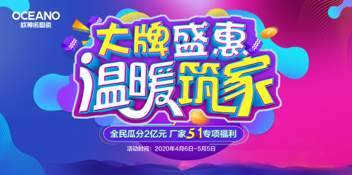 大牌盛惠,溫暖筑家;品牌鉅惠,錯過不再。快到歐神諾門店一起瓜分2億元廠家五一專項福利吧!