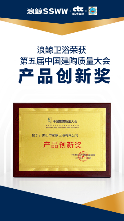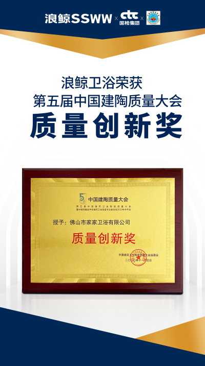浪鯨衛浴榮獲第五屆中國建陶質量大會“產品創新獎”“質量創新獎”