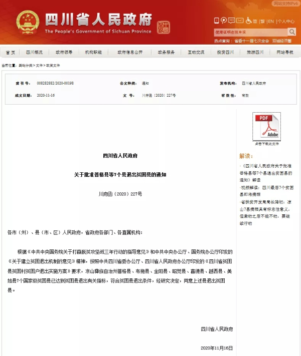 11月16日,四川省人民政府網站發布了《關于批準普格縣等7個縣退出貧困縣的通知》,批準涼山州普格縣、布拖縣、金陽縣、昭覺縣、喜德縣、越西縣、美姑縣7縣退出貧困縣序列。至此,佛山對口幫扶涼山的貧困縣全部清零,新明珠陶瓷集團參與幫扶的昭覺縣也正式脫貧摘帽。