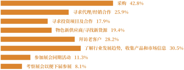 參加上屆展會的國內觀眾來自30個省的355個城市,人數83,092,占比87.3%。海外觀眾來自:印度、韓國、馬來西亞、泰國、越南、伊朗、印尼、孟加拉、日本、俄羅斯、意大利、土耳其、西班牙、埃及、烏干達、摩洛哥、美國、巴西、阿根廷、墨西哥、澳大利亞等76個國家和地區,人數12,088,占比12.7%。
