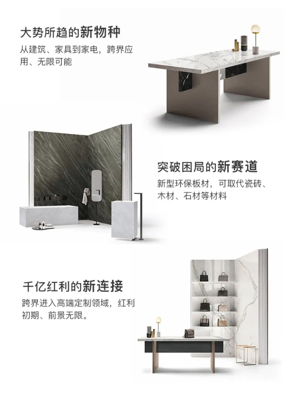 新明珠巖板作為新明珠陶瓷集團旗下的專業巖板品牌,品牌知名度和實力毋庸置疑。加之傳統建陶行業盈利日漸困難,同質化、價格戰等問題屢見不鮮,而巖板作為新時代的跨界環保材料,優勢也是毋庸置喙的。