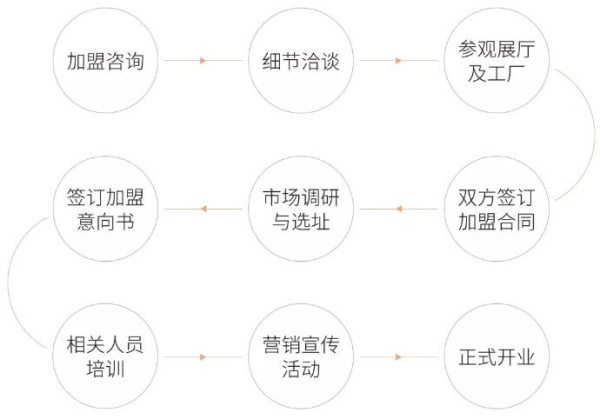 完善的加盟流程,讓加盟商從各個環節都對品牌和產品有充分了解,結合市場和自身條件,匹配合適的加盟模式,并在總部的幫扶和支持下,開店盈利。