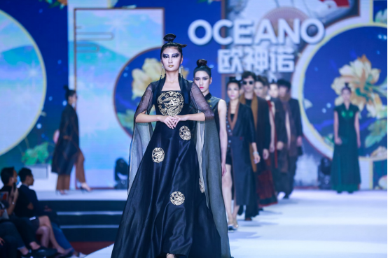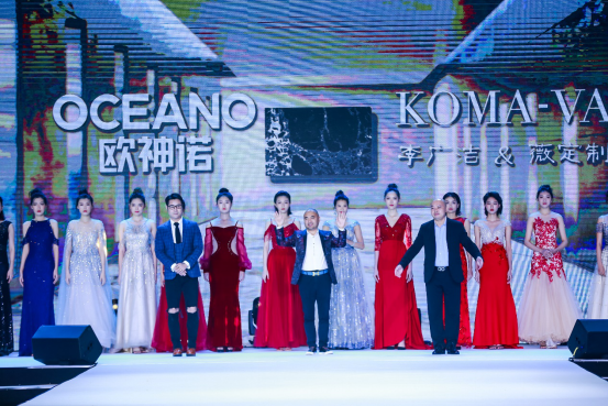 本次發布會其中的一大亮點便是由高定晚禮服及KOMA-VA的首席設計師李廣潔先生策劃的時裝與瓷磚的跨界走秀了。在時尚走秀所營造的氛圍中,驚艷地展現出高定時裝和瓷磚藝術的另一種美態。
