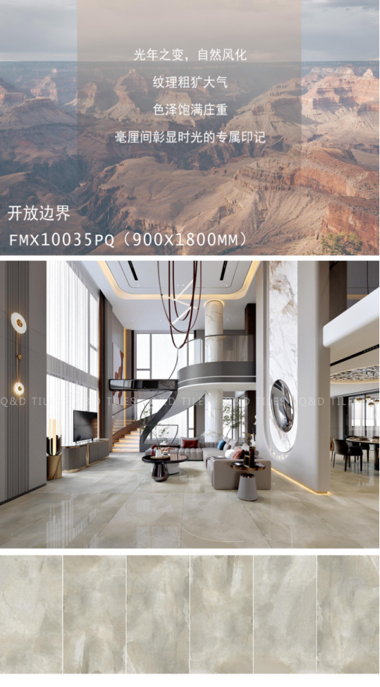 在紋理維度相比,QD瓷磚不滿足于只做大自然的搬運工,通過先進的技術手段高精度還原自然肌理,將瞬息萬變或亙古不變的天然紋理定格,帶你瞬移千里之外,看見自然的力量。